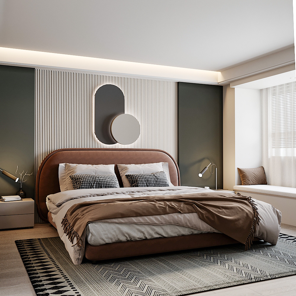 Aria Bed captures the essence of contemporary minimalism blended with cozy sophistication. Featuring a soft, curved upholstered headboard in a muted earthy tone, This bed features a soft, rounded upholstered headboard that brings a sense of comfort and elegance to the room. The plush fabric in a warm, earthy tone adds a cozy yet sophisticated touch. Perfect for contemporary interiors, the bed balances style and comfort effortlessly.