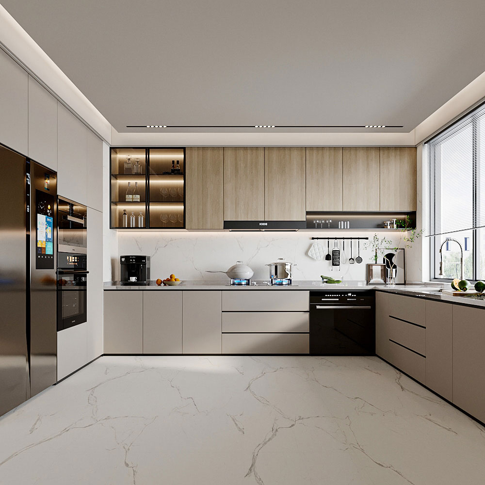 Lumi A modern kitchen inspired by light and brightness. matte cabinets paired with subtle LED strips create a fresh and welcoming atmosphere. Perfect for small or large spaces where natural light blends with modern design.