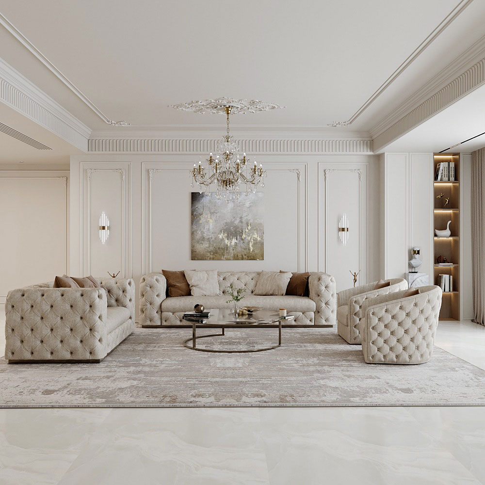 Victoria Sofa Inspired by antique European design, the Victoria Sofa features ornate detailing. Upholstered in damask or embroidered fabric, it creates an atmosphere of grandeur. This sofa is ideal for formal living rooms, adding warmth, grace, and a royal touch.